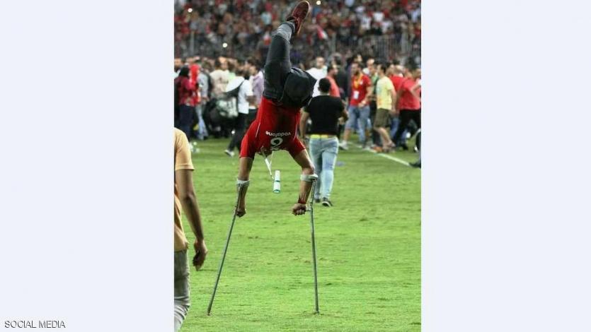 والصورة التي أثارت إعجاب الآلاف عبر مواقع التواصل الاجتماعي في مصر، تصور شابا من ذوي الاحتياجات الخاصة بقدم واحدة، يطير في الهواء مستندا إلى عكازيه، فرحا بفوز منتخب "الفراعنة" على ضيفه الكونغولي وتأهله إلى كأس العالم 2018 في روسيا.