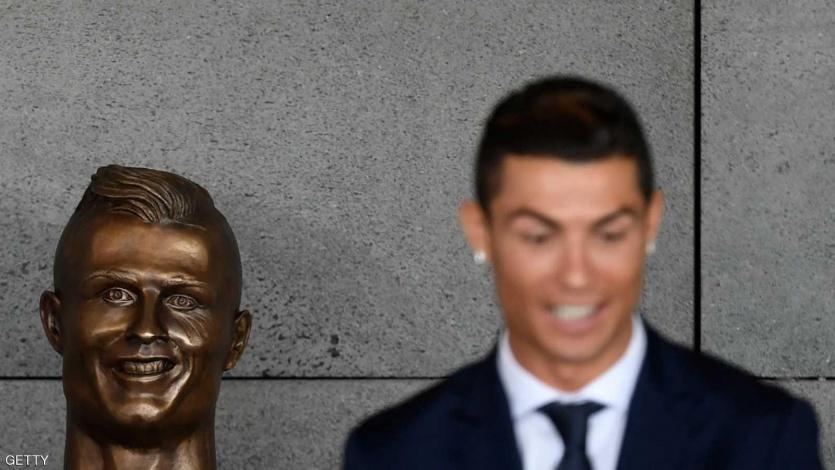 كشف الفنان خوسيه أنطونيو نافارو أورتيغا النقاب عن تمثال برونزي جديد لنجم ريال مدريد كريستيانو رونالدو يزن 60 كيلوغراما بارتفاع متر تقريب.