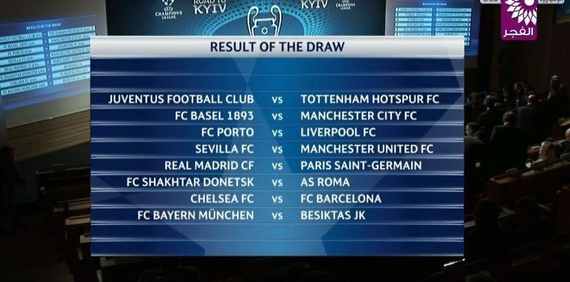 ووقع ريال مدريد في مواجهة باريس سان جيرمان، فيما اصطدم برشلونة بتشيلسي.