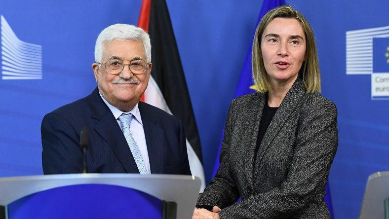 طالب الرئيس محمود عباس، دول الاتحاد الاوربي بالاعتراف بدولة فلسطين، خلال مؤتمر صحفي مشترك مع المفوضة العليا للسياسة الخارجية والأمنية للاتحاد الاوروبي فيديريكا موغريني، اليوم الاثنين.