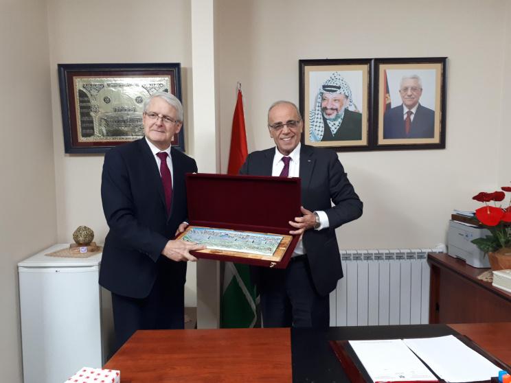 بحث وزير النقل والمواصلات المهندس سميح طبيلة مع وزير النقل الكندي/ مارك غارنو مساء اليوم الاربعاء 24/1/2018 فور إستقباله في مقر مكتبه برام الله جملة من المواضيع والقضايا التى تهم قطاع النقل والمواصلات الفلسطيني وسبل تعزيز التعاون المشترك .