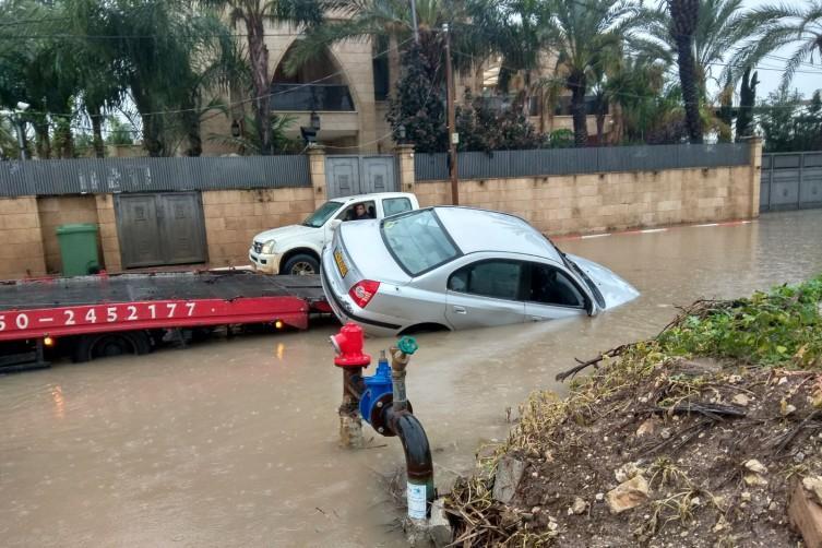 وفي مدينة باقة الغربية بمنطقة المثلث، وحيفا غمرت المياه مركبات المواطنين.