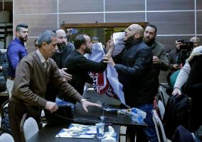 وكان مجموعة من النشطاء الفلسطينيين في مدينة بيت لحم، طردوا، اليوم الثلاثاء، وفدا امريكيا زار غرفة تجارة وصناعة محافظة بيت لحم.