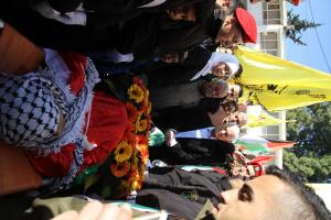شاركت محافظ رام الله والبيرة د. ليلى غنام وعضو اللجنة المركزية لحركة فتح عباس زكي وقائد منطقة رام الله والبيرة العميد سليمان قنديل وعدد من ممثلي الأجهزة الأمنية والكوادر التنظيمية اليوم بجنازة الشهيد الطفل ليث ابو نعيم 16 عاما والذي استهدف بدم بارد من قبل قوات الاحتلال دون أي مبرر وهو من بلدة المغير شمال شرق المحافظة ، حيث احتشد مئات المواطنين أمام مجمع فلسطين لإخراج الشهيد، وجرت له جنازة عسكرية رسمية، قبل أن تضع د.غنام على جسده الطاهر إكليلا من الزهور وتقرأ لروحه الطاهرة الفاتحة.