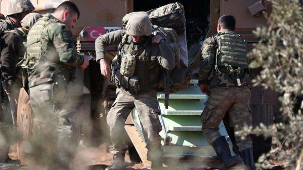 وقتل سبعة جنود أتراك، بينهم خمسة فقدوا حياتهم حين تعرضت دبابتهم لهجوم قرب عفرين.