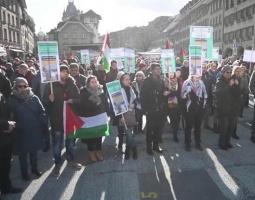 وطالبوا المتظاهرون أن تتوقف سويسرا عن التعاون عسكريا مع إسرائيل، ووقف استيراد منتجات المستوطنات الإسرائيلية.