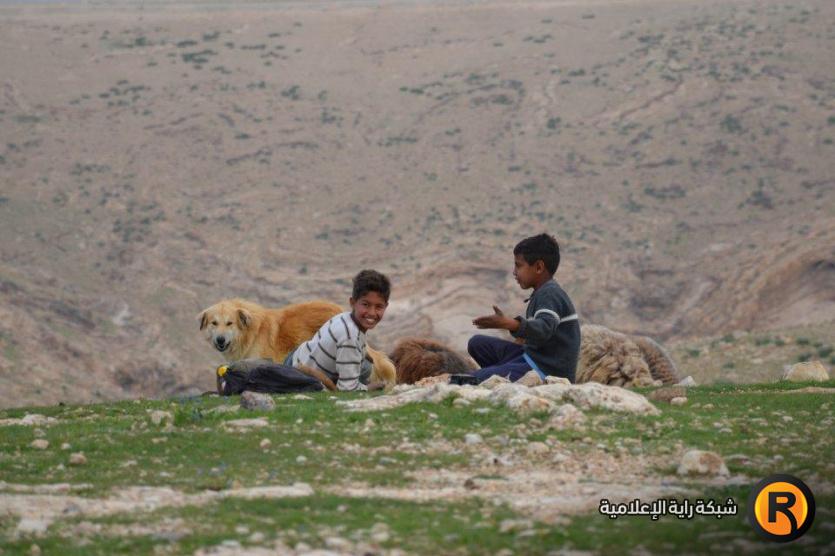 طفلان يرعيان الأغنام في أحد جبال الأغوار
