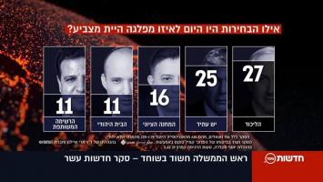 كذلك كشف استطلاع القناة 10 حال إجراء انتخابات في ظل الاتهامات الموجهة لنتنياهو بالفساد من قبل الشرطة الإسرائيلية سيحصل حزب الليكود ( 27 مقعد )، يوجد مستقبل ( 25 مقعد)، المعسكر الصهيوني ( 16 مقعد )، البيت اليهودي ( 11 مقعد )، القائمة العربية المشتركة ( 11 مقعد )، ميرتس ( 7 مقاعد )، يهودوت هتوراة ( 7 مقاعد )"إسرائيل" بيتنا ( 6 مقاعد )