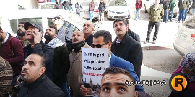 وحاول العشرات من النشطاء في المقاومة الشعبية وضد الإستيطان والتطبيع اقتحام المركز الفلسطيني لدراسات السياسية والمسحية بعد أن احتشدوا أمامه، حيث كان الوفد الأمريكي يعقد إجتماعاً، وسط هتافات تندد بالسياسة والمواقف الأمريكية اتجاه الشعب الفلسطيني.
