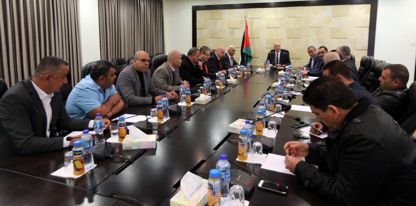 استقبل رئيس الوزراء د. رامي الحمد الله، اليوم الاحد في مكتبه برام الله، المكتب التنفيذي لمخيمات الضفة الغربية، بحضور رئيس سلطة الطاقة ظافر ملحم، ومستشار رئيس الوزراء للصناديق العربية والإسلامية ناصر قطامي، ووكيل وزارة الداخلية اللواء محمد منصور، لبحث سبل دعم المخيمات والنهوض بالخدمات المقدمة لسكانها.