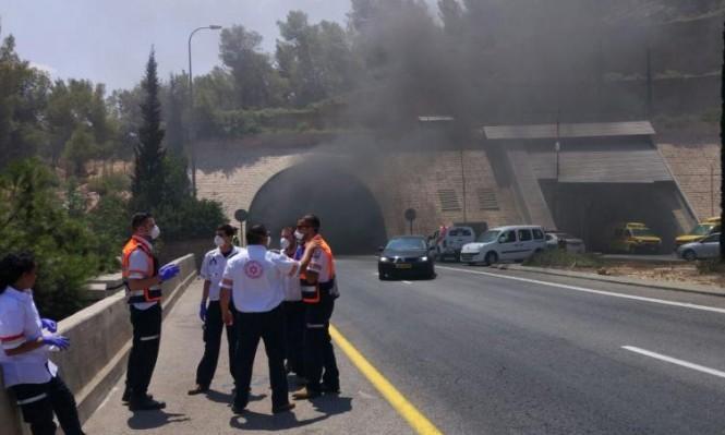 اندلع حريق في سيارة "ترانزيت" محملة بمواد نسيج في أنفاق الناصرة باتجاه العفولة، صباح اليوم الأربعاء.