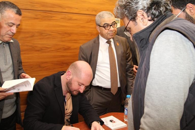 قام موريس بقلة بتقديم الكتاب والكاتب، والحوار معه قبل أن يوقع كرزم نسخاً من الكتاب للحضور.