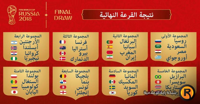 المجموعة (A): روسيا - السعودية - مصر - الأوروغواي.