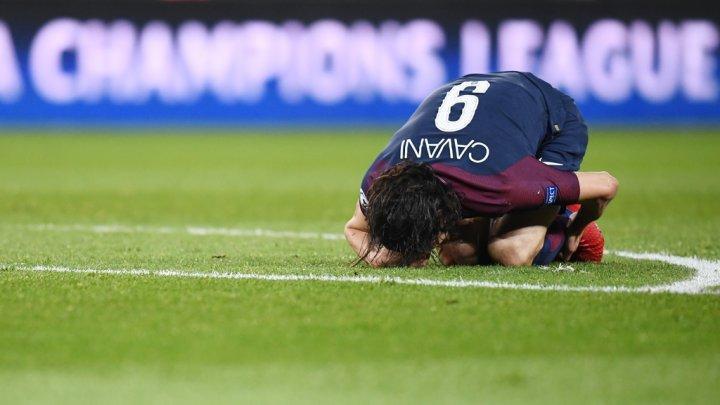 لاعب باريس سان جيرمان ادينسون كافاني متحسرا عقب الخروج المبكر
