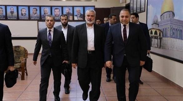 الوفد المصري خلال لقاء هنية أمس في غزة