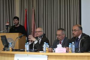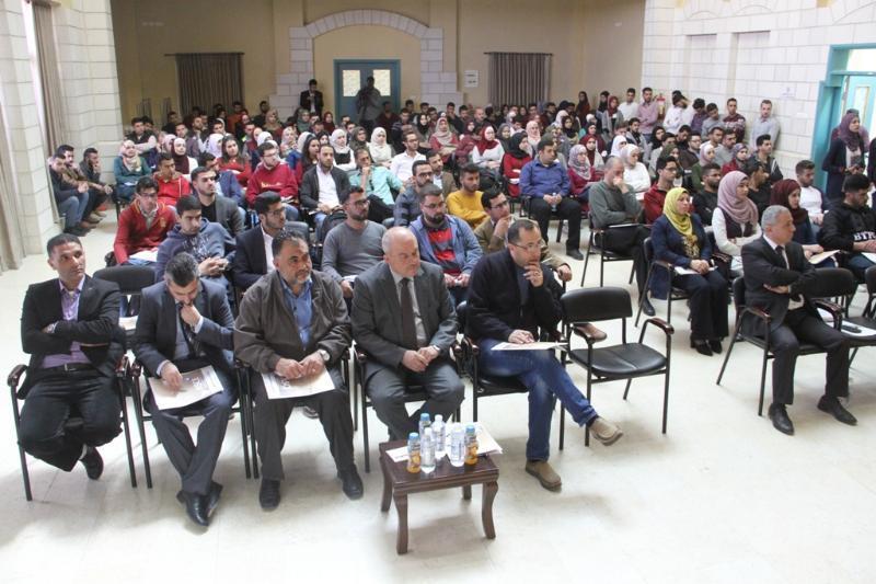 ومن جانبه رحب الأستاذ الدكتور النتشة بالضيوف، مبدياً سعادته بالإقبال على هذه الورشة من قبل الطلبة نظراً لأهميتها، مثنياً على نشاط الجمعيات الطلابية في الجامعة وخصوصاً الجمعيات الطلابية في كلية الهندسة وتكنولوجيا المعلومات، موضحاً أن طلبة كلية الهندسة يشكلون قرابة ال25% من إجمالي طلبة الجامعة وهي أكبر كليات الجامعة، فضلاً عن حصول معظم برامجها على اعتماد الإيبت العالمي، مستعرضاً العديد من إنجازات كلية الهندسة والتي كان آخرها فوز فريق من قسم هندسة الطاقة والبيئة بالمركز الأول في نصف نهائيات مسابقة الطاقة العالمية في سنغافورة وتأهله للنهائي، مؤكداً أن الجامعة تحرص على تطوير طلبتها في سوق العمل للحد من البطالة التي تشكل تحدياً للجامعة وخريجيها، متمنياً النجاح للورشة للخروج بمخرجات تطبق على أرض الواقع.