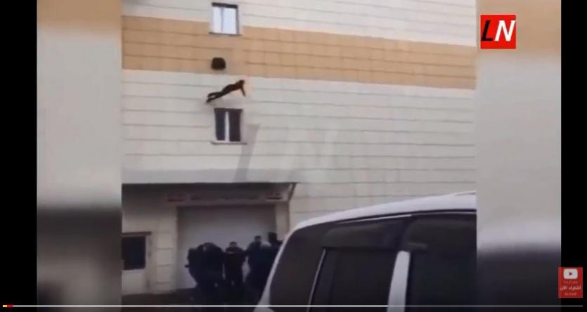 وأظهر فيديو، نشر على مواقع التواصل الاجتماعي الأحد، أشخاصا يقفزون من النوافذ هربا من النيران.