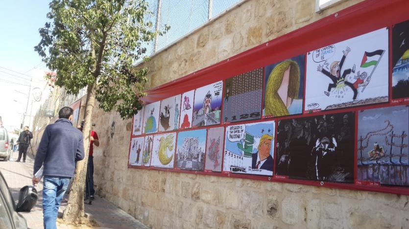 بلدية رام الله تفتتح معرض الكاريكاتير "من العالم إلى القدس"