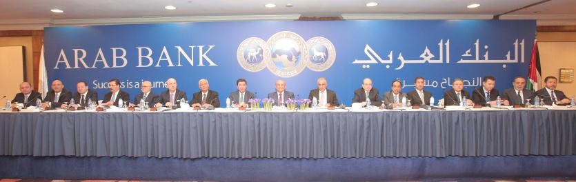 انتخب البنك العربي خلال اجتماع هيئته العامة مجلس ادارة جديد للبنك لمدة أربع سنوات اعتباراً من تاريخه يضم كلا من: صبيح المصري والدكتور باسم عوض الله والمؤسسة العامة للضمان الاجتماعي ووزارة مالية المملكة العربية السعودية ووهبة تماري ومؤسسة عبد الحميد شومان وبسام كنعان وعباس زعيتر والمهندس علاء البطاينة وسليمان الحافظ والدكتور مسلم بن علي مسلم وأسامة مكداشي.