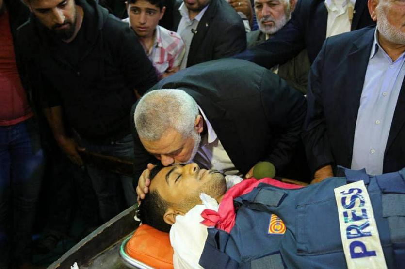 وقال هنية خلال كلمة مقتضبة ألقاها في صلاة جنازة الشهيد الصحفي ياسر مرتجى: إن الشهيد الياسر "وجه سهام الحقيقة لفضح العدو الذي يقتل دون أن يفرق من أجل زرع الخوف في قلوب أبناء شعبنا".