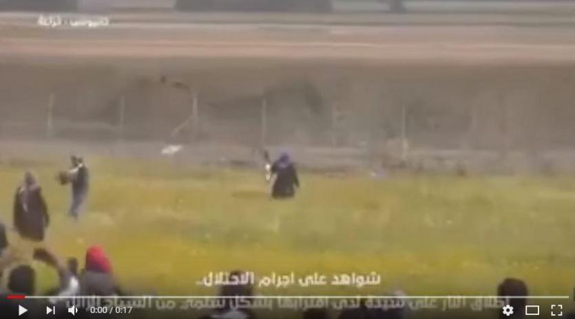 أظهر شريط فيديو لحظة قنص جنود الاحتلال لإمرأة تحمل علم فلسطين خلال مسيرات العودة شرق غزة.