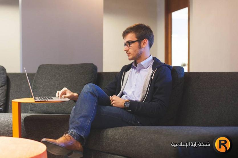 رجل يجلس أمام الحاسوب