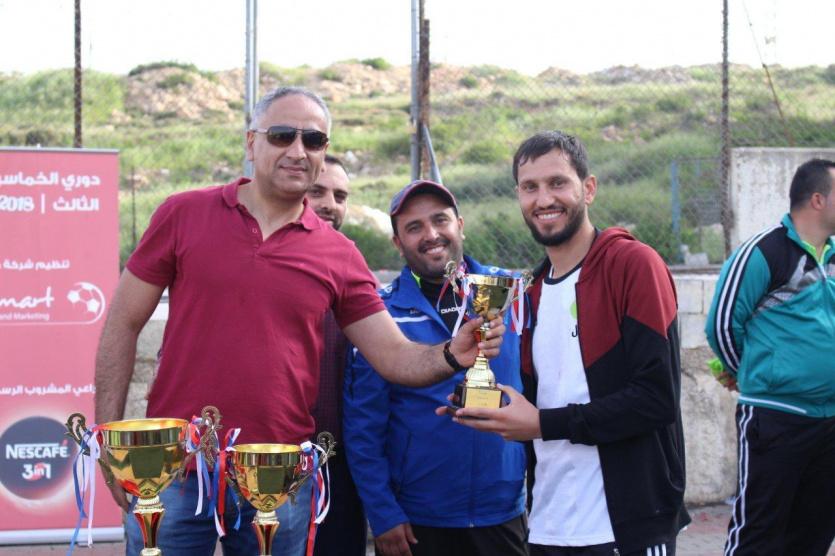 وفي نهاية البطولة تم تتويج الفرق الفائزة بحضور داني غانم ممثل شركة نستله التجارية وإدارة شركة سمارت وممثلي الفرق المشاركة، وقد تم تقديم جوائز أفضل حارس مرمى اللاعب فارس من مدى، وأفضل لاعب محمد الريماوي من جراند فارم، وهداف البطولة أحمد مساعد من البنك العربي والفريق المثالي بنك فلسطين ، وكأس المركز الثالث جوال وكأس المركز الثاني وميداليات فضية البنك العربي وكأس المركز الأول وميداليات ذهبية فريق جراند فارم.