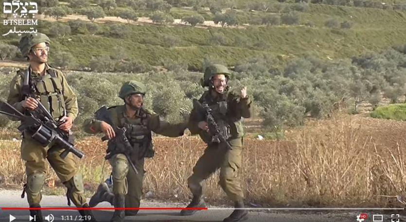 نشرت منظمة "بيتسيلم" الحقوقية الإسرائيلية مقطع فيديو وقع يوم الجمعة، الموافق 13.4.2018، عند الساعة 14:00 تقريبًا، يظهر فيه جندي إسرائيلي وهو يحتفل ويردد كلمات نابية بعد إصابته شابًا فلسطينيًا تظاهر مع مجموعة شبان ضد اقتحام لجيش الاحتلال في قرية مادما جنوب نابلس.