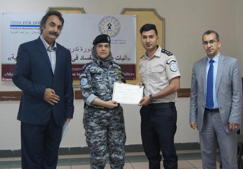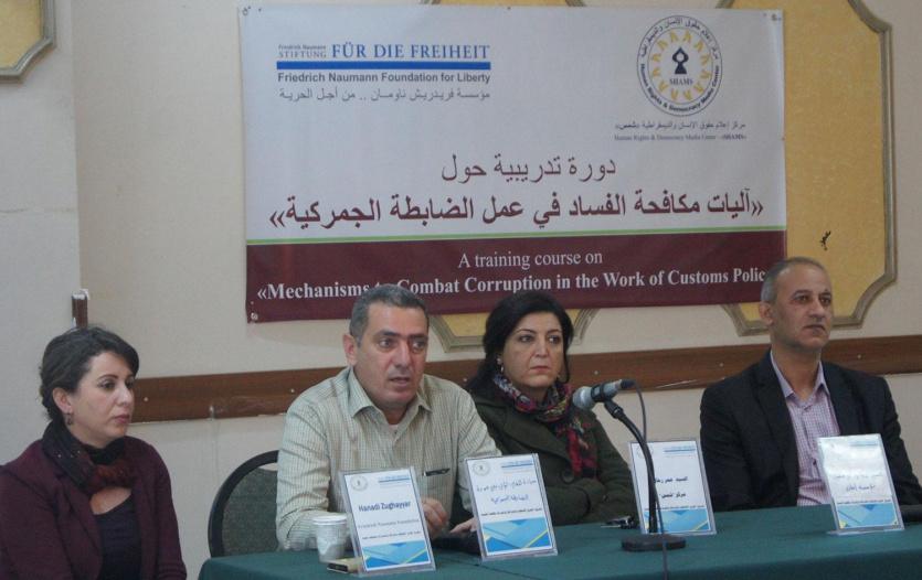 اختتم مركز إعلام حقوق الإنسان والديمقراطية "شمس" بدعم وبشراكة مع مؤسسة فريدريش ناومان من أجل الحرية، دورة تدريبية لمجموعة من العاملين في جهاز الضابطة الجمركية، حول آليات مكافحة الفساد في عمل الضابطة الجمركية، والتي تأتي ضمن مشروع تعزيز النزاهة والشفافية والحكم الرشيد لمكافحة الفساد، الذي ينفذه المركز بالتعاون مع فريدريش ناومان.