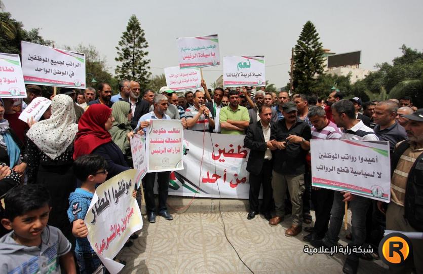 وطالب الرئيس محمود عباس بـ "إلزام الحكومة بصرف الرواتب كاملة كما وعد، الأسبوع الماضي، والتراجع عن قراراتها المجحفة بحق الموظفين".