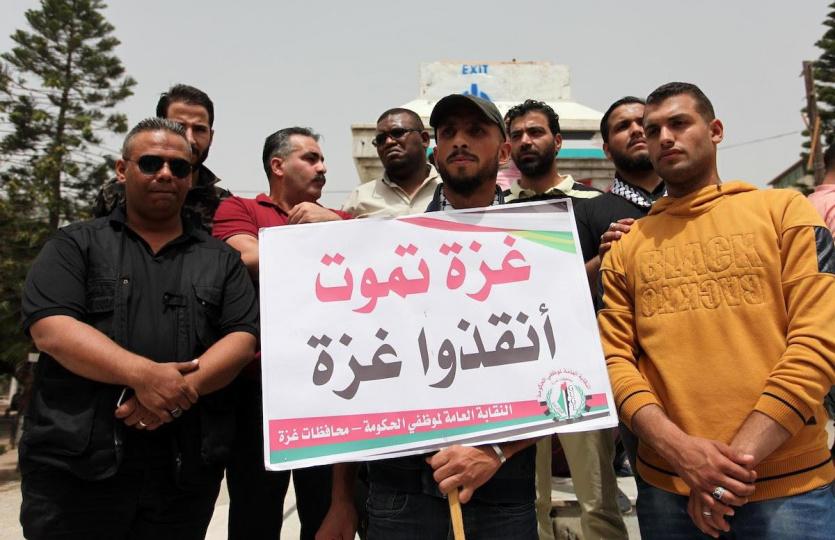 اعتصم العشرات من موظفي السلطة الفلسطينية وأهالي الشهداء والجرحى والأسرى في قطاع غزة، اليوم الخميس، احتجاجا على أزمة الرواتب، ولمطالبة الحكومة بصرف رواتبهم.