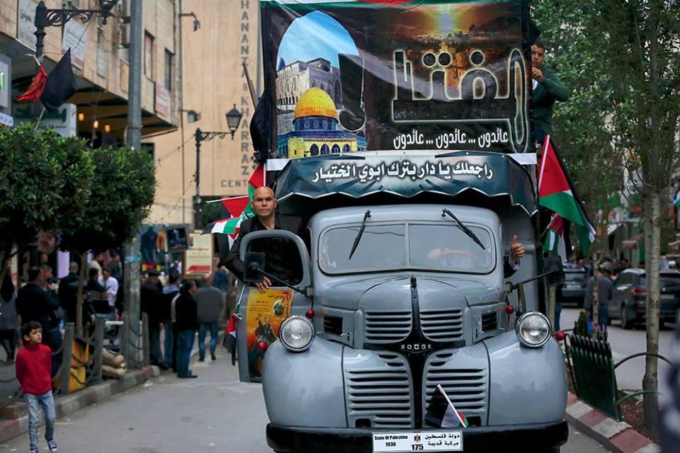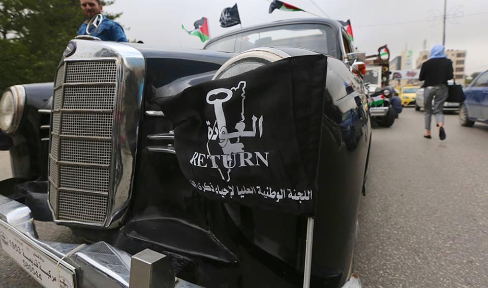 وجالت الشاحنات والسيارات التي أقلت الفلسطينيين الذين شردوا من مدنهم وقراهم على أيدي العصابات الصهيونية التي ارتكبت بحقهم أبشع المجازر عام 1948، شوارع رام الله، وحملت الأعلام السوداء والعلم الفلسطيني، وأسماء المدن والقرى التي هجروا منها في إشارة تؤكد حق العودة الذي لن يسقط بالتقادم.