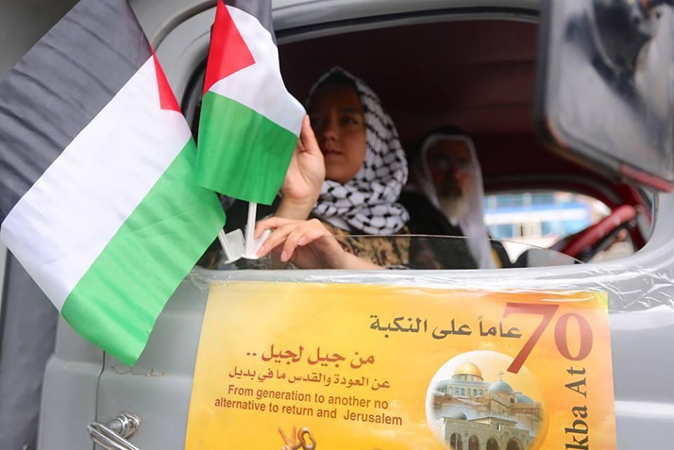 انطلقت مسيرة مركبات مساء الأحد، جابت شوارع مدينة رام الله بالضفة الغربية، احياءً للذكرى السبعين للنكبة.