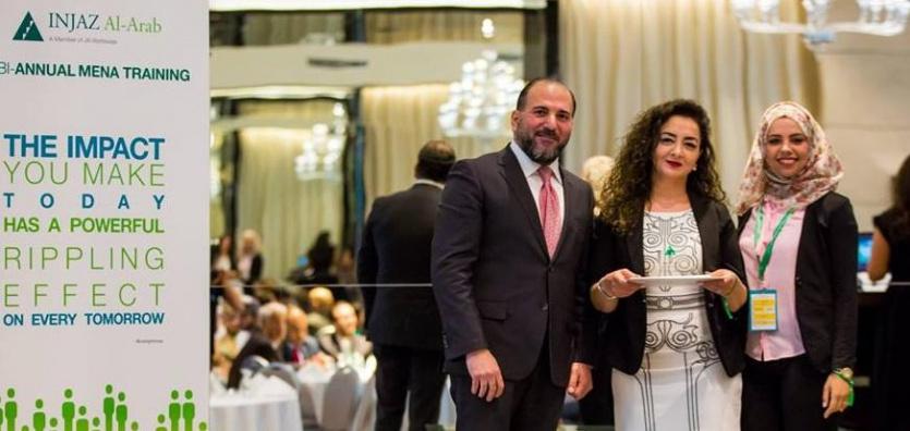 وقد تمّ تسليم الجائزتين لمؤسسة إنجاز على هامش المؤتمر السنوي التي عقدته مؤسسة انجاز العرب في عمان - الاردن، بحضور ممثلين عن 15 دولة عربية متبنية لبرامج انجاز، وقد تمّ خلال المؤتمر وعلى مدار ثلاثة أيام تبادل الخبرات بين المشاركين،والاستفادة من تجاربهم العملية، بالاضافة الى عقد ورش تدريبية للمشاركين، قدّمها مستشارون متخصصون بمجال إدارة المؤسسات التنموية، وتطوير البرامج المقدمة وموائمتها مع التغيرات على الواقع الاقتصادي والاجتماعي بالوطن العربي.