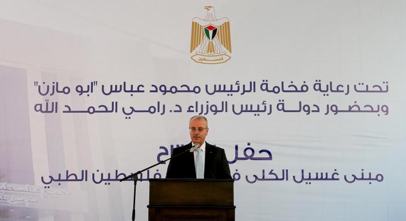 وأوضح الحمد الله: "في خضم هذا الواقع الإنساني المتفاقم، يصبح رفد المشافي والمراكز الصحية الحكومية والخاصة بالأجهزة والمعدات وبالكوادر الطبية والإدارية والفنية، وإدخال تخصصات وخدمات جديدة نوعية، عنصرا ضروريا وملحا لدعم القدرات والموارد الذاتية وتوطين العلاج وتخفيض التحويلات إلى خارج النظام الصحي الفلسطيني. فمستشفى خالد الحسن للأورام وزراعة النخاع، ومستشفى العيون في ترمسعيا، ومستشفى الرئيس محمود عباس في حلحول، ومستشفى دورا، والمستشفى التخصصي في بيت ساحور، وكل التوسعة والتجهيزات والإضافات التي نراها اليوم في مجمع فلسطين الطبي وفي كافة مشافي الوطن، هي ركائز وعناصر داعمة لنظام صحي وطني فاعل، يعمل في ظل التحديات، ويستجيب للاحتياجات المتزايدة لأبناء شعبنا في كافة أماكن تواجدهم".