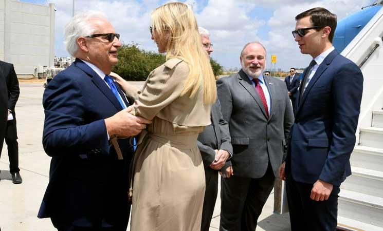 كوشنير وإيفانكا لحظة وصولهم تل أبيب لافتتاح السفارة