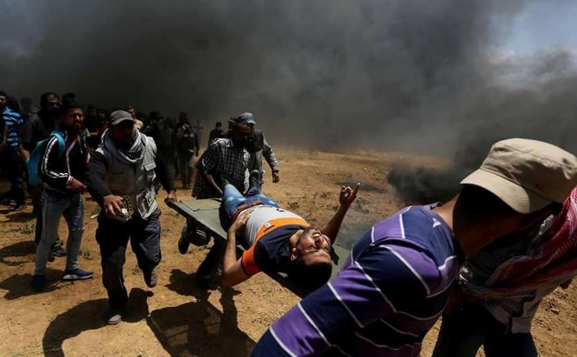 مصاب خلال نقله من موقع المسيرات في غزة