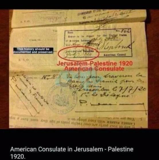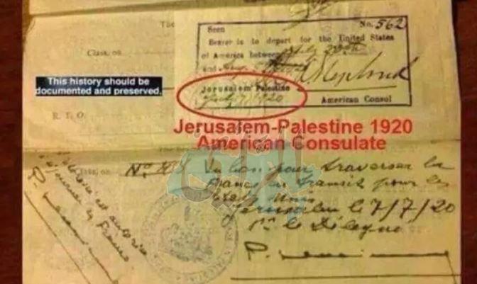 تداول رواد مواقع التواصل الاجتماعي وثيقة من القنصلية الامريكية في القدس عام 1920 أي قبل قيام دولة الاحتلال على أرض فلسطين وطرد شعبها.
