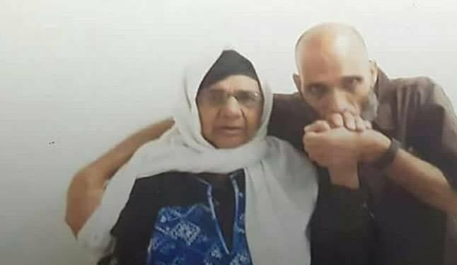 الشهيد عزيز عويسات خلال التقاطه صورة مع والدته من داخل السجن