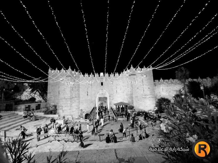 عشرات المقدسيين يقضون أوقاتهم بعد الإفطار على درجات باب العامود في القدس المحتلة