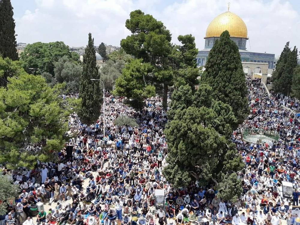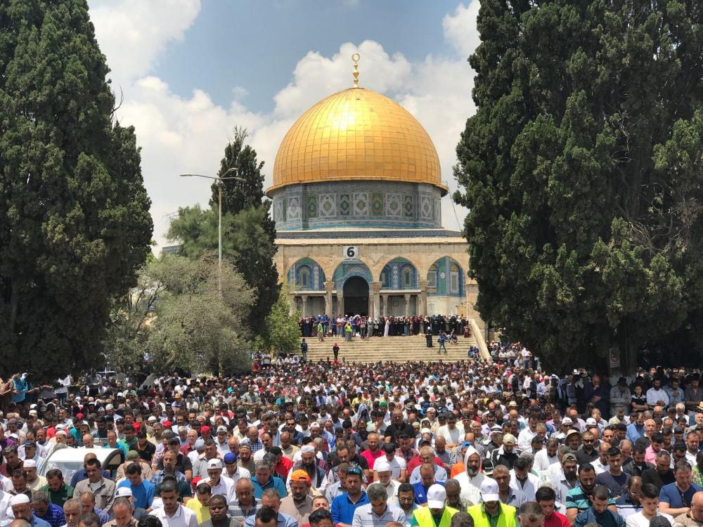 أدى أكثر من ربع مليون شخص صلاة الجمعة الثالثة من شهر رمضان المبارك، في رحاب المسجد الأقصى، على الرغم من إجراءات وقيود قوات الاحتلال التي حوّلت مدينة القدس الى ثكنة عسكرية.