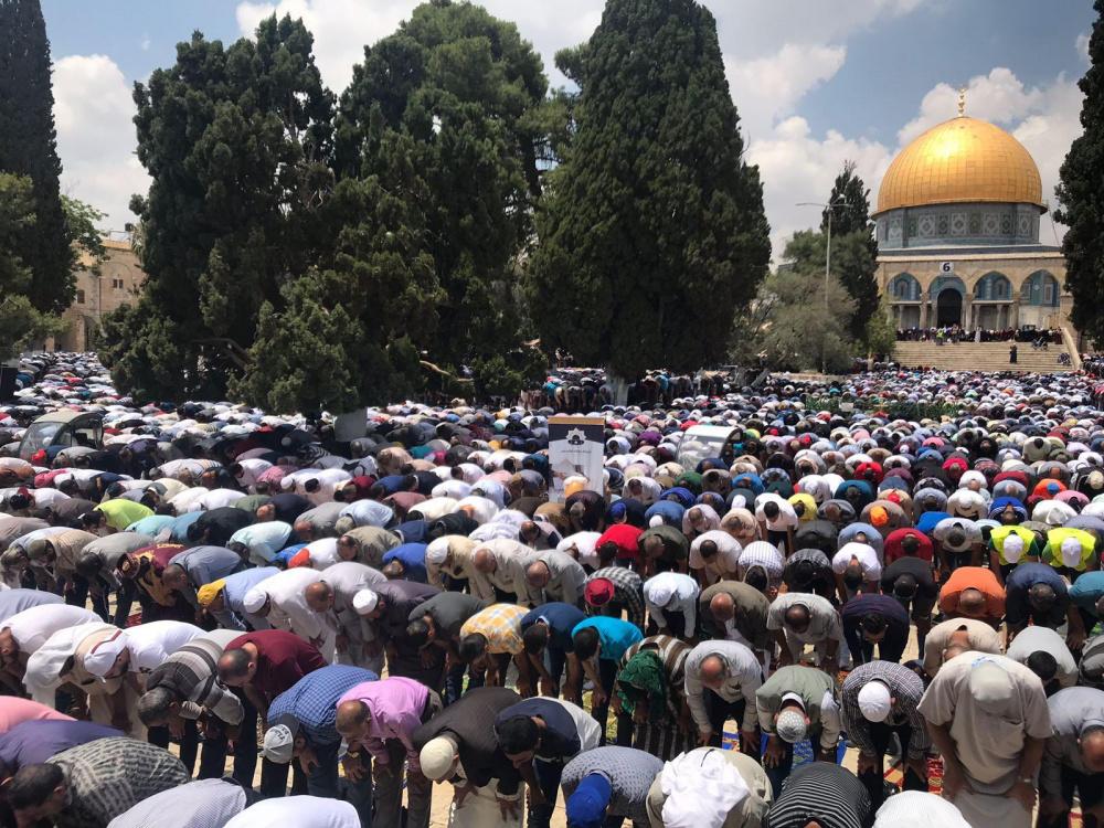 وفرضت قوات الاحتلال الإسرائيلي قيود وإجراءات اعاقت وصول المصلين من كافة مدن الضفة وغزة والداخل، الا أن أكثر من 250 ألف مصلٍ تمكنوا من الوصول الى المسجد الأقصى المبارك.