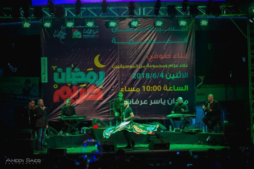 وقدم المنشد علاء عزام وفرقته الموسيقية، مجموعة من الاناشيد الدينية التي تفاعل معها الجمهور وسط أجواء رمضانية عمت الأمسية والمدينة.