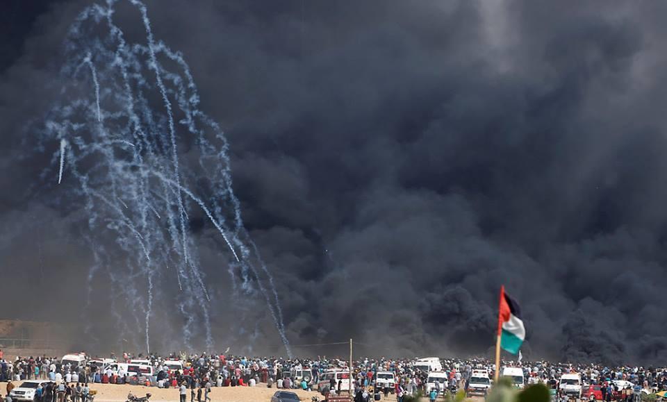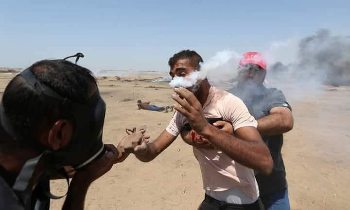 وبلغت حصيلة اعتداء الاحتلال منذ انطلاق مسيرة العودة شرق قطاع غزة وحتى اليوم، 127 شهيدا و 14700 اصابة بجراح مختلفة واختناق بالغاز.