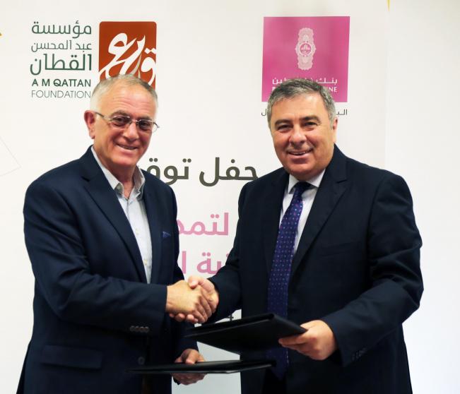 وتم التوقيع بحضور مدير إدارة الشركات في البنك ناصر باكير، ومدير إدارة خدمات الأفراد ثائر حمايل، ورئيسة دائرة المسؤولية الاجتماعية هبة طنطش، ورمزي عطا من دائرة المسؤولية الاجتماعية في البنك، فيما حضر من مؤسسة عبد المحسن القطان فداء توما نائب المدير العام، ونادر داغر مدير الاتصال والعلاقات العامة، ومجد حجاج مديرة تنمية الموارد.