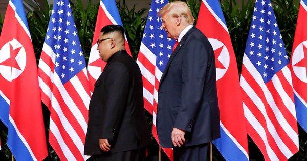 عقد الرئيس دونالد جيه. ترامب رئيس الولايات المتحدة الأمريكية والرئيس كيم جونغ أون رئيس لجنة شؤون الدولة في جمهورية كوريا الشعبية الديمقراطية قمة تاريخية أولى في سنغافورة في 12 يونيو (جوان) 2018.