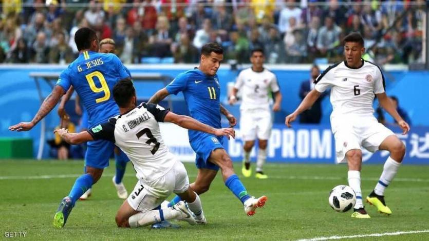 وسجل لاعب برشلونة فيليب كوتينيو الهدف القاتل في الدقيقة الأولى من الوقت بدل الضائع، بعد أن صمدت كوستاريكا 90 دقيقة، فشل فيها البرازيليون باختراق الدفاع الكاريبي الصلب.