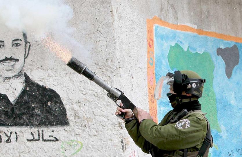 ارشيف- جندي يطلق قنبلة صوب المتظاهرين