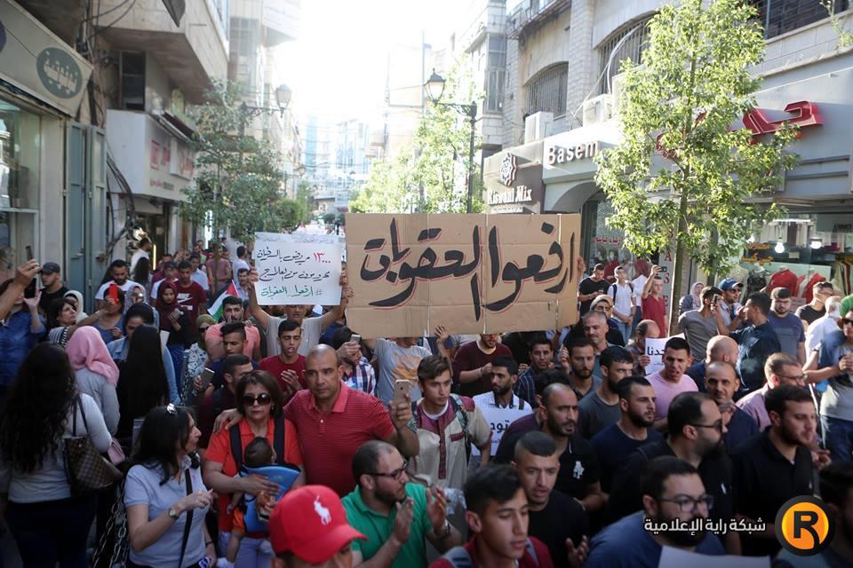 مسيرة تطالب برفع العقوبات عّن قطاع غزة وسط رام الله