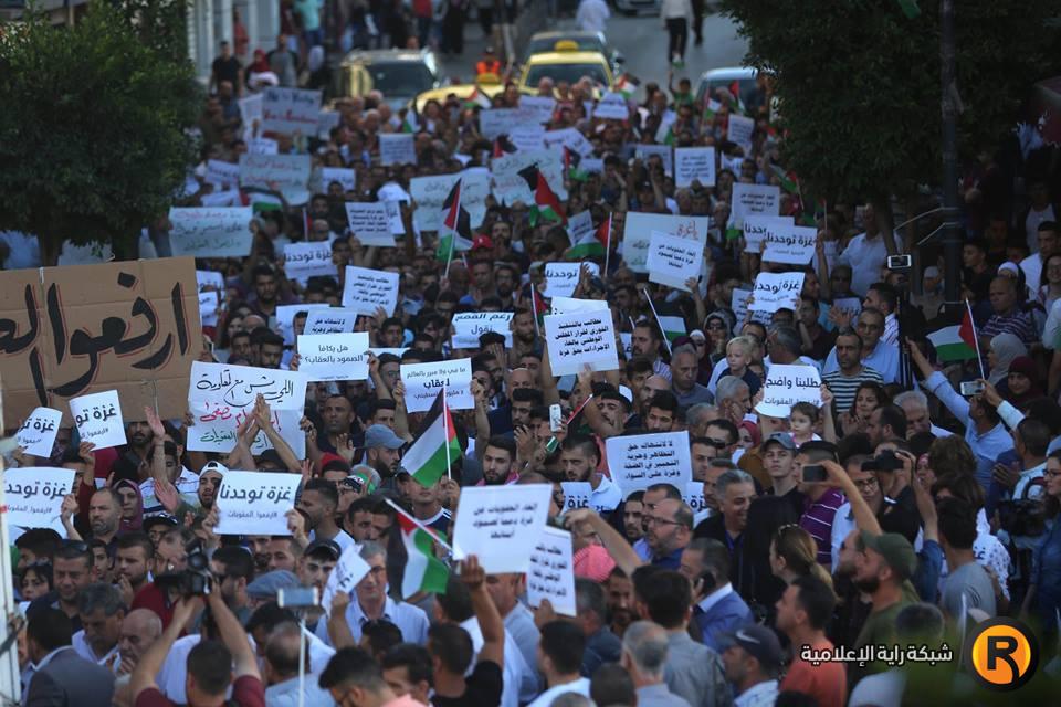 فيديو وصور- مظاهرة برام الله تطالب برفع الاجراءات عن غزة
